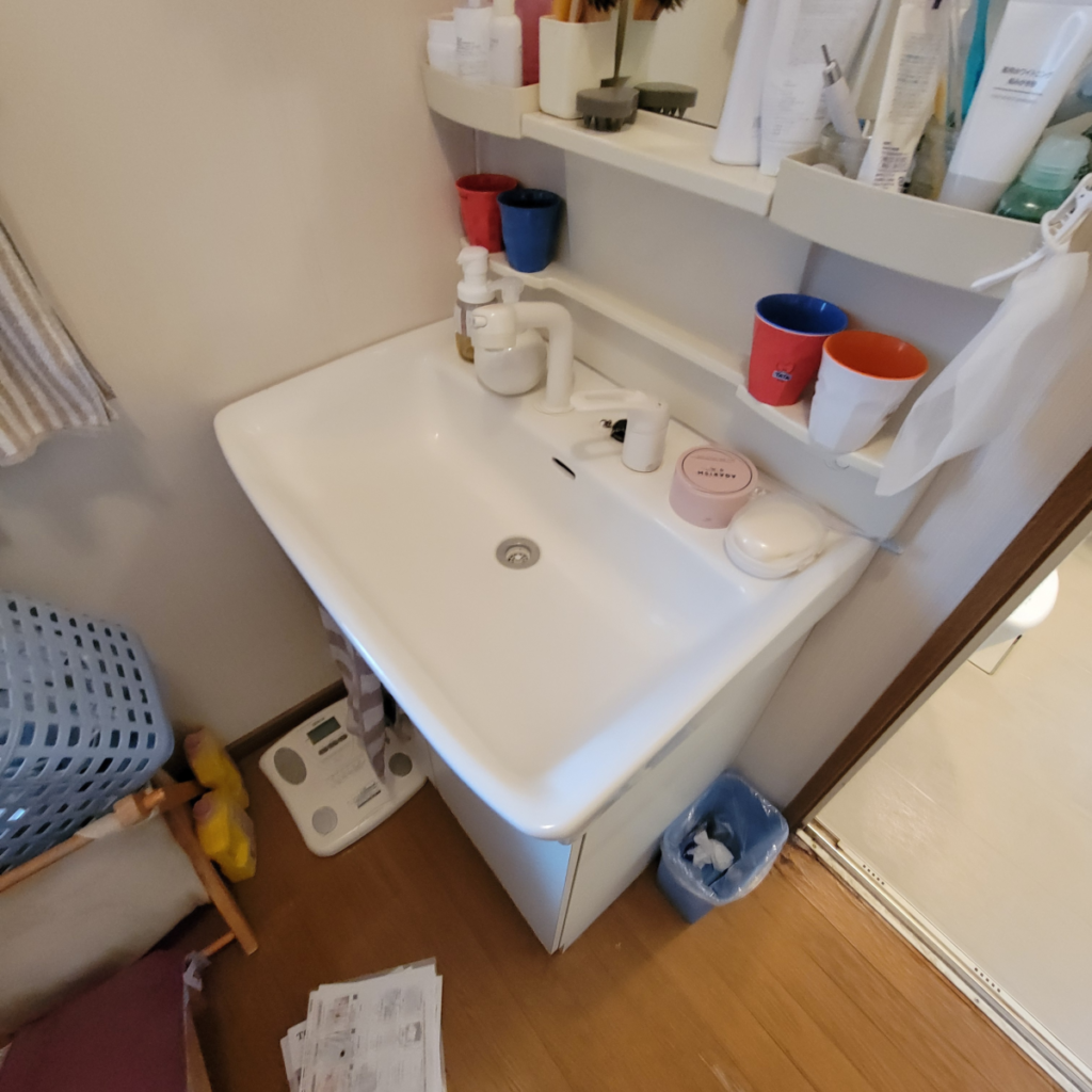 ・木目の洗面化粧台で、やさしく落ち着いた空間に