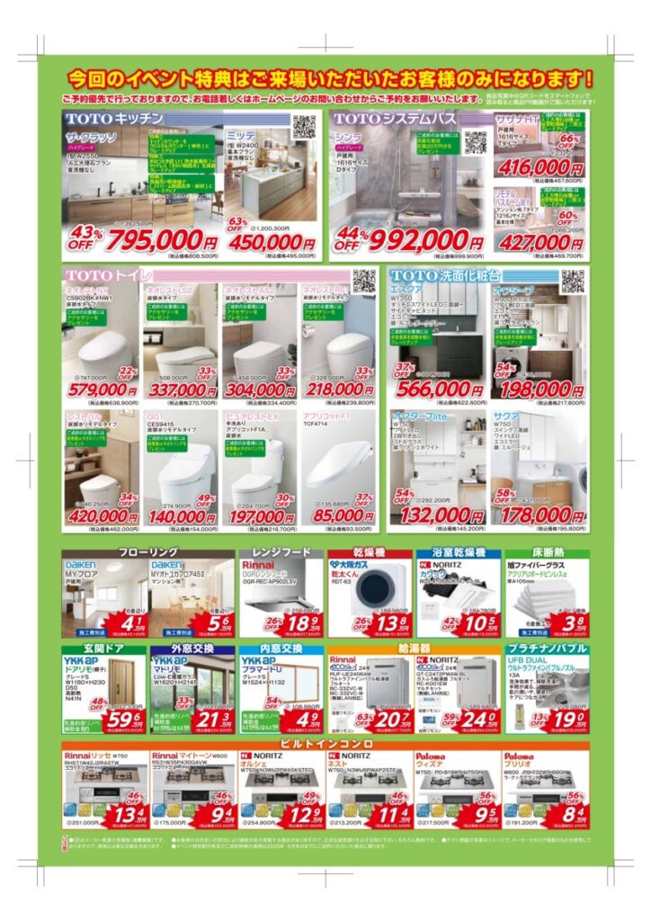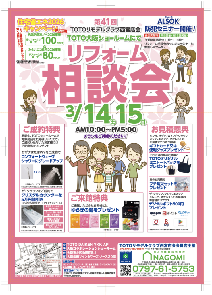 TOTO大阪ショールームにて、2日間限定のリフォーム相談会を開催いたします。