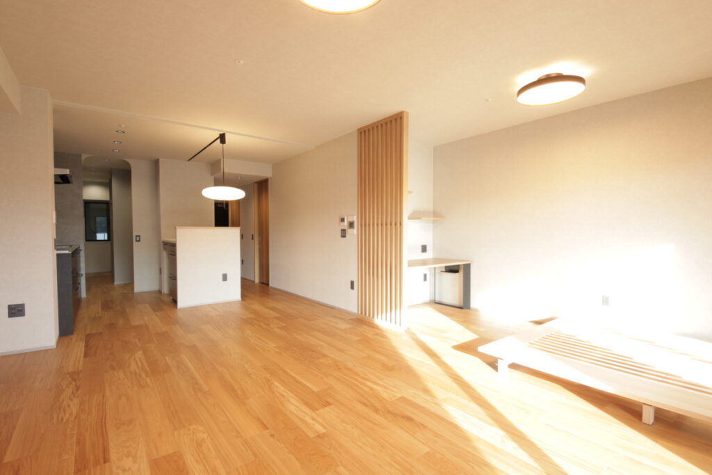 視線がLDK全体へ自然に抜けることで、同じ面積でありながら広がりと居場所の連続性を感じられる空間へと変化しています。