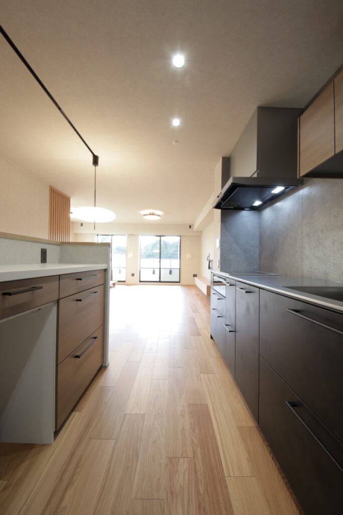 キッチンからLDK奥まで視線が自然と抜ける構成とし、空間全体のつながりを感じられるレイアウトへ再設計しました。