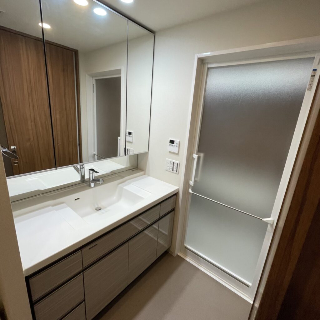 既存の浴室はそのままに活かしながら、洗面を中心に動線や空間の関係性を整理することで、日常の動きが自然につながるサニタリー空間へと整えています。